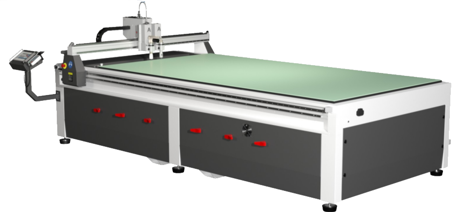 Plotter de corte de gran formato, para corte por cuchilla donde se requiera rapidez de prototipado, preseries y producción con altas precisiones de trabajo en diferentes materiales, como todo tipo de elastómeros, fibras, espumas, aislamientos para HVAC. Muy robusto y con bajo mantenimiento, característica de toda la serie PLC. Configurable con diferentes sistemas de cabezales y herramientas tangenciales, incluso con cámara para lecturas de marcas. Área útil de trabajo de 300x160cm y altura de 100mm.